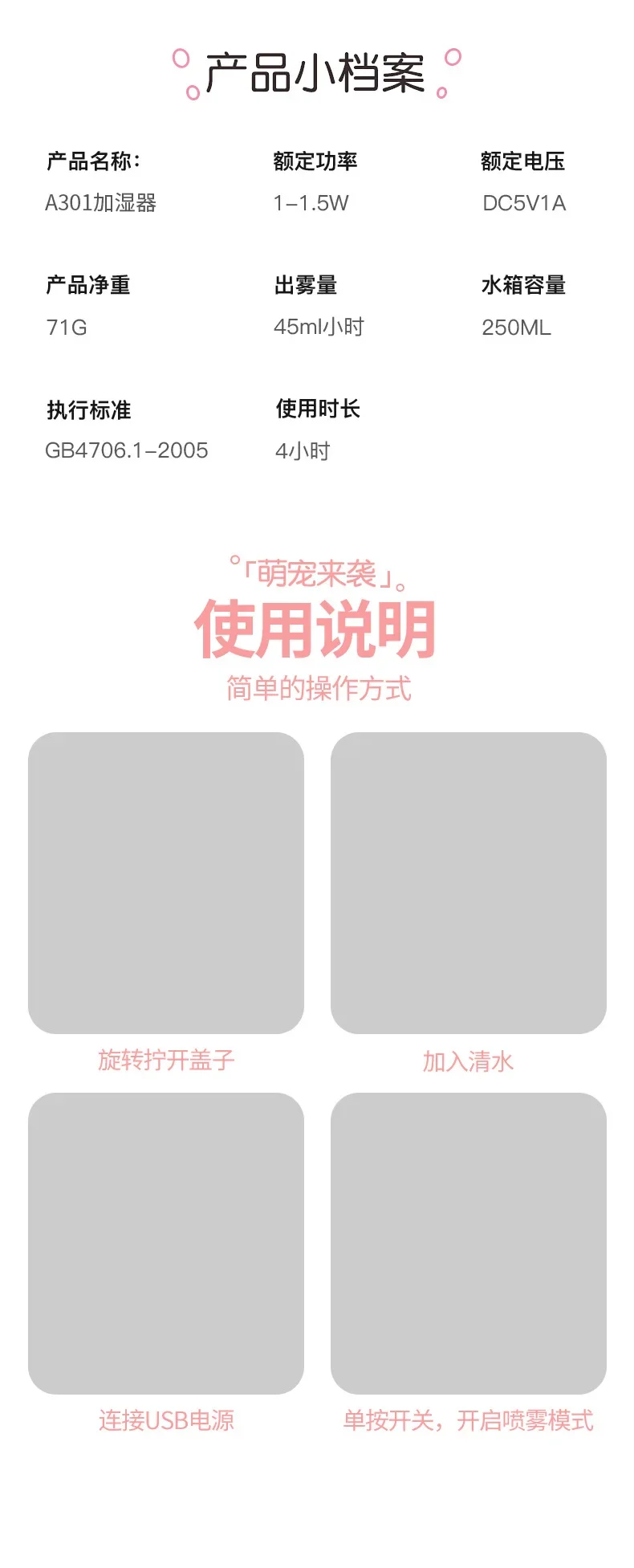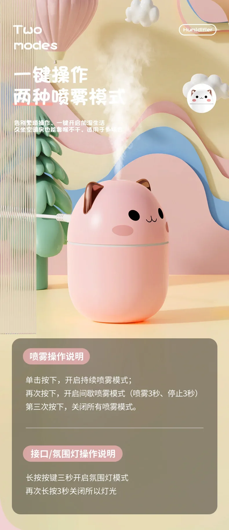 Cute 250ml Mini Humidifier & Aroma Diffuser for Home or Car
